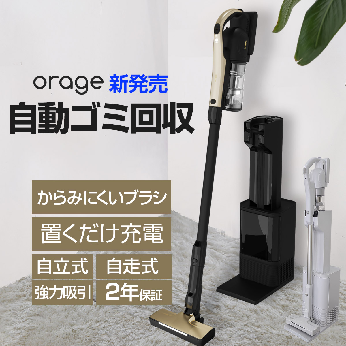 メーカー公式 Orage RR35 【2025年7月新発売】【2年保証】掃除機 コードレス 自動ゴミ回収ステーション 置くだけ充電 軽量 人気 自立 自走式 強力吸引 紙パック 【本州送料無料】