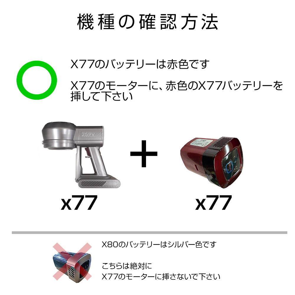 ※X80とX77のモーター・バッテリーは共用できません。